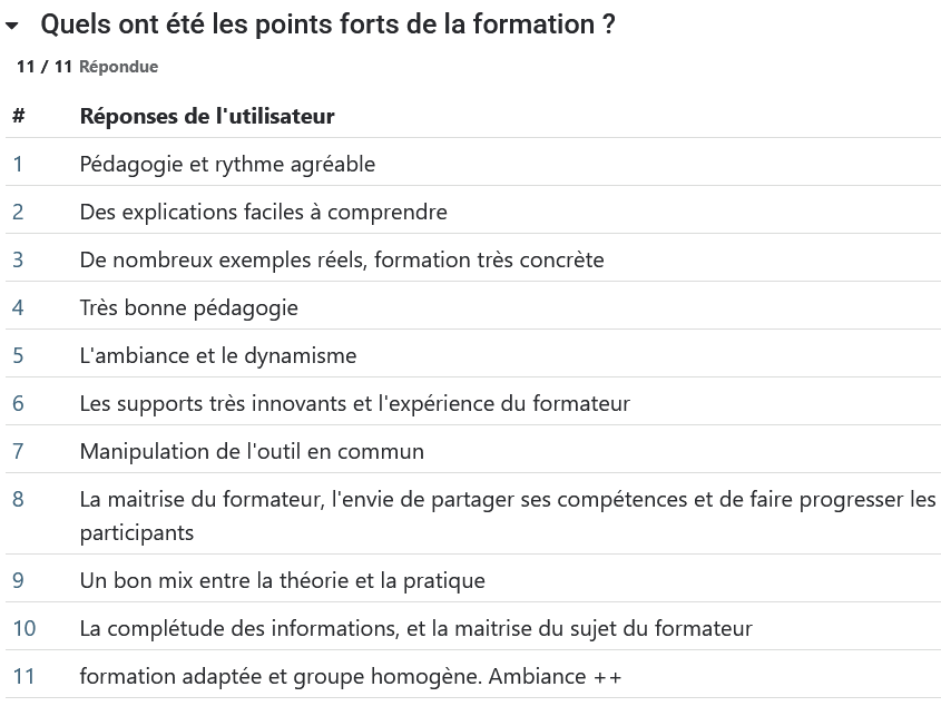 À chaque session de formation, les stagiaires évaluent la formation afin de contribuer à l’amélioration continue de l'Organisme de Formation MIATU et de partager leur expérience avec d’autres personnes.