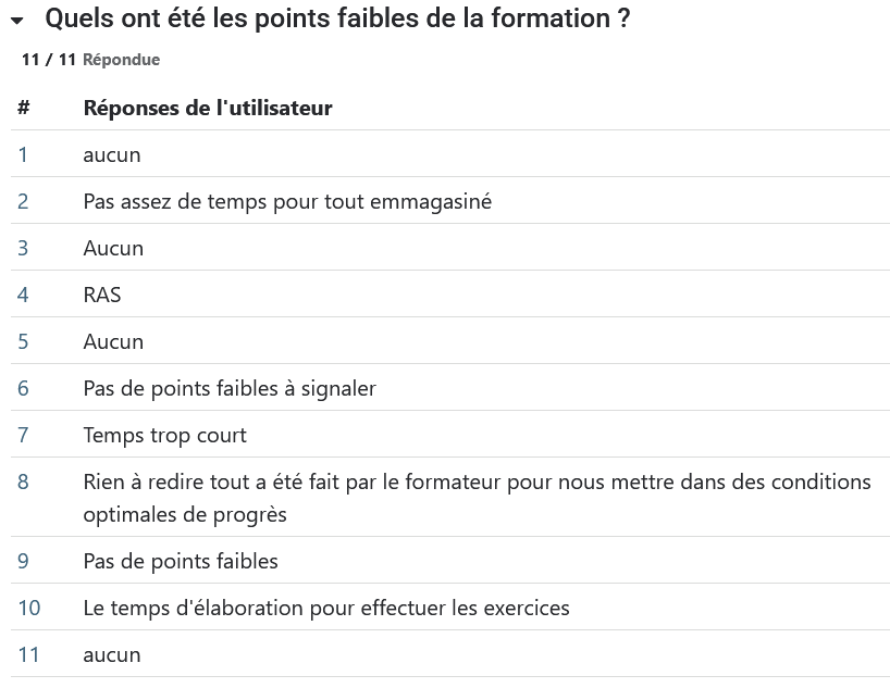 Réponses liées à cette formation :